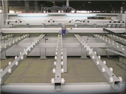 Transporter rolkowy służący do wprowadzania elementów w strefą obróbki.